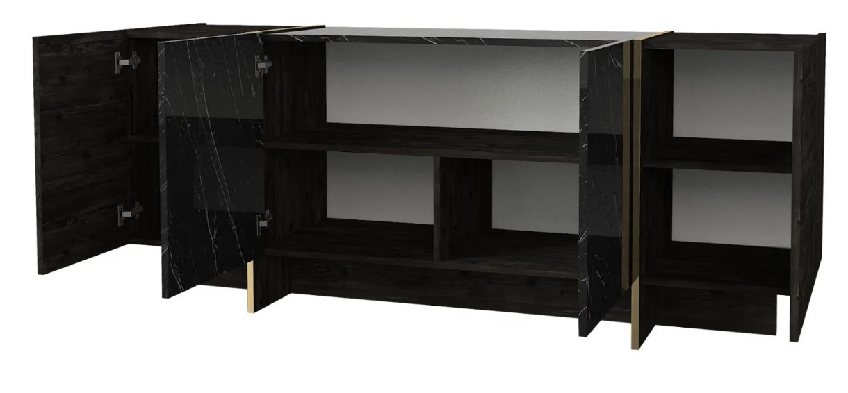 Dispunand de numeroase rafturi si spatiu de depozitare suplimentar, aceasta consola ofera un spatiu amplu pentru a va pastra bunurile organizate si la Indemana. Spuneti adio dezordinii si salutati un spatiu de locuit ordonat si elegant.