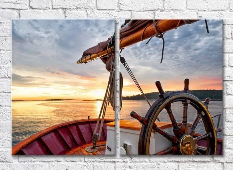 Pictură ArtPoster Yacht steering wheel at sea (3453831)