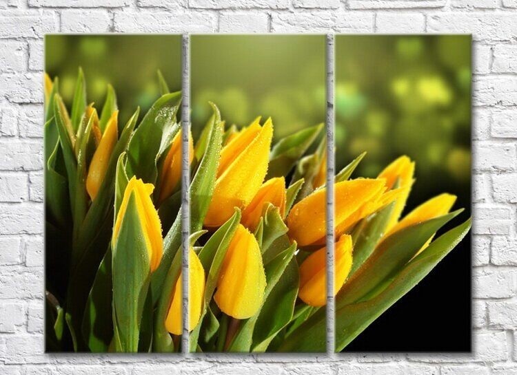 Pictură Rainbow Yellow tulips covered with dew (3448888)