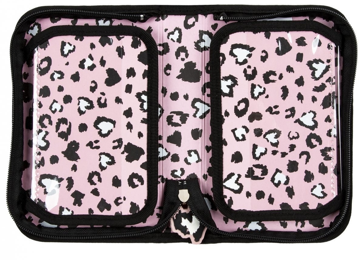 Interiorul cutiei de creion are multe file pentru accesorii.