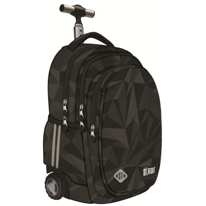 Ghiozdanul școlar cu roți St. Right oferă celor mai mici elevi libertate deplină de a alege cea mai convenabilă modalitate de utilizare. Ghiozdanul este echipat cu bretele căptușite confortabile, care permit transportul în spate sau pe umăr. Există un mâner scurt și moale pentru transportul în mână, iar roțile și mânerul telescopic le vor permite celor mici să îl manevreze cu ușurință, chiar și atunci când ghiozdanul este foarte greu.