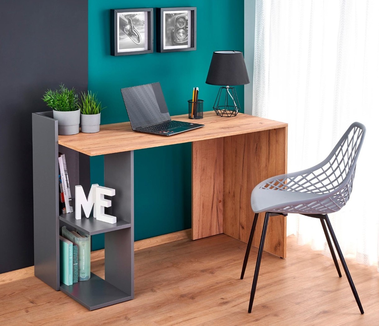 Masa de birou Halmar Fino Stejar Wotan/Antracit