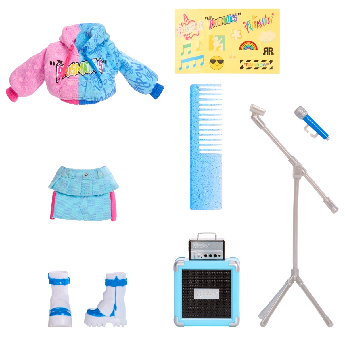 Descopera noua colectie Rainbow High Junior High Rockband, unde muzica si moda merg mana in mana! Personajele indragite revin in versiuni mai tinere, gata sa cucereasca scena si sa inspire stil. Skyler, cu parul ei spectaculos in nuante de albastru si roz, devine vedeta trupei si un must-have pentru orice colectionar.
