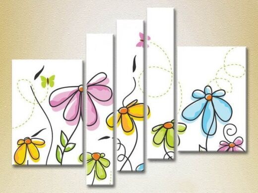 Pictură Rainbow Polyptych Butterflies and Flowers 03 (2231752)