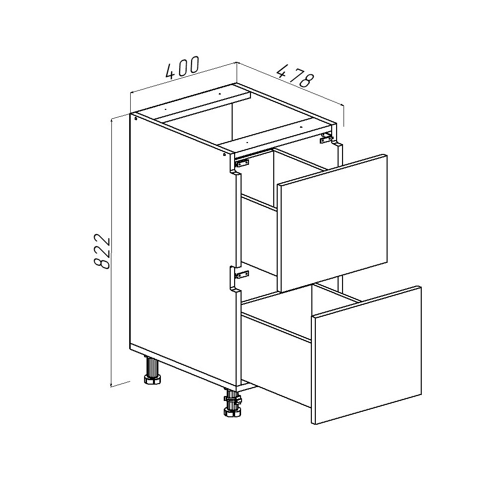 - Dulap inferior pentru bucătărie Monti Cucine Stone Grey 400×820×460 cu sertare