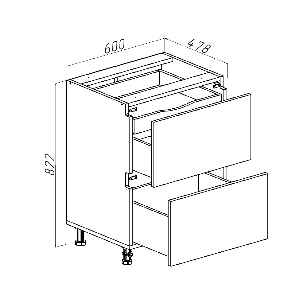 - Dulap inferior pentru bucătărie Monti Cucine Stone Grey 600×820×460 cu sertare