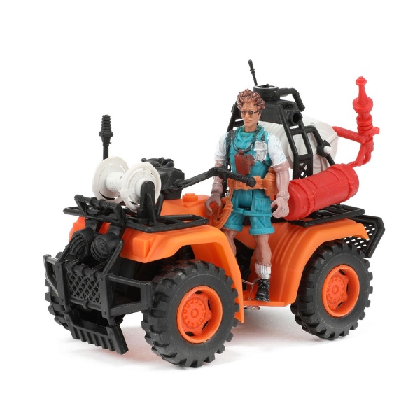 Setul include un jeep , 2 figurine, accesorii și un dinozaur, cu care micuțul poate inventa povești palpitante și se poate juca în mod interactiv.