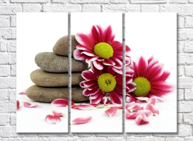 Pictură Rainbow Variegated pink chrysanthemum flowers and flat stones (500522)