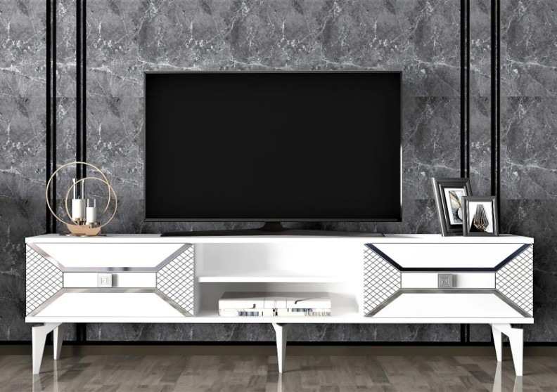 Comodă TV Trendy Yumedi White/Silver 150x50x30cm GTR006367