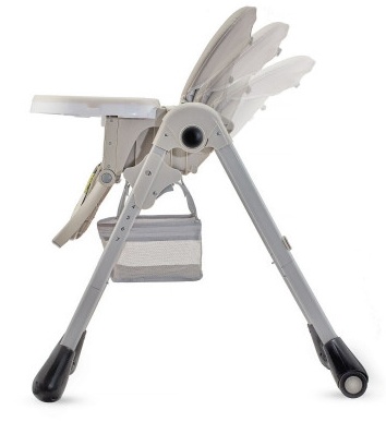YUMMY se pliază în doar 5 secunde, devenind aproape plat (datorită posibilității de a fixa tăvița pe picioarele din spate). Când nu este utilizat, nu ocupă spațiu în bucătărie sau în sufragerie. Scaunul este dotat cu rotițe din cauciuc pentru o deplasare ușoară și cu un mâner pe spătar, care facilitează transportul.
