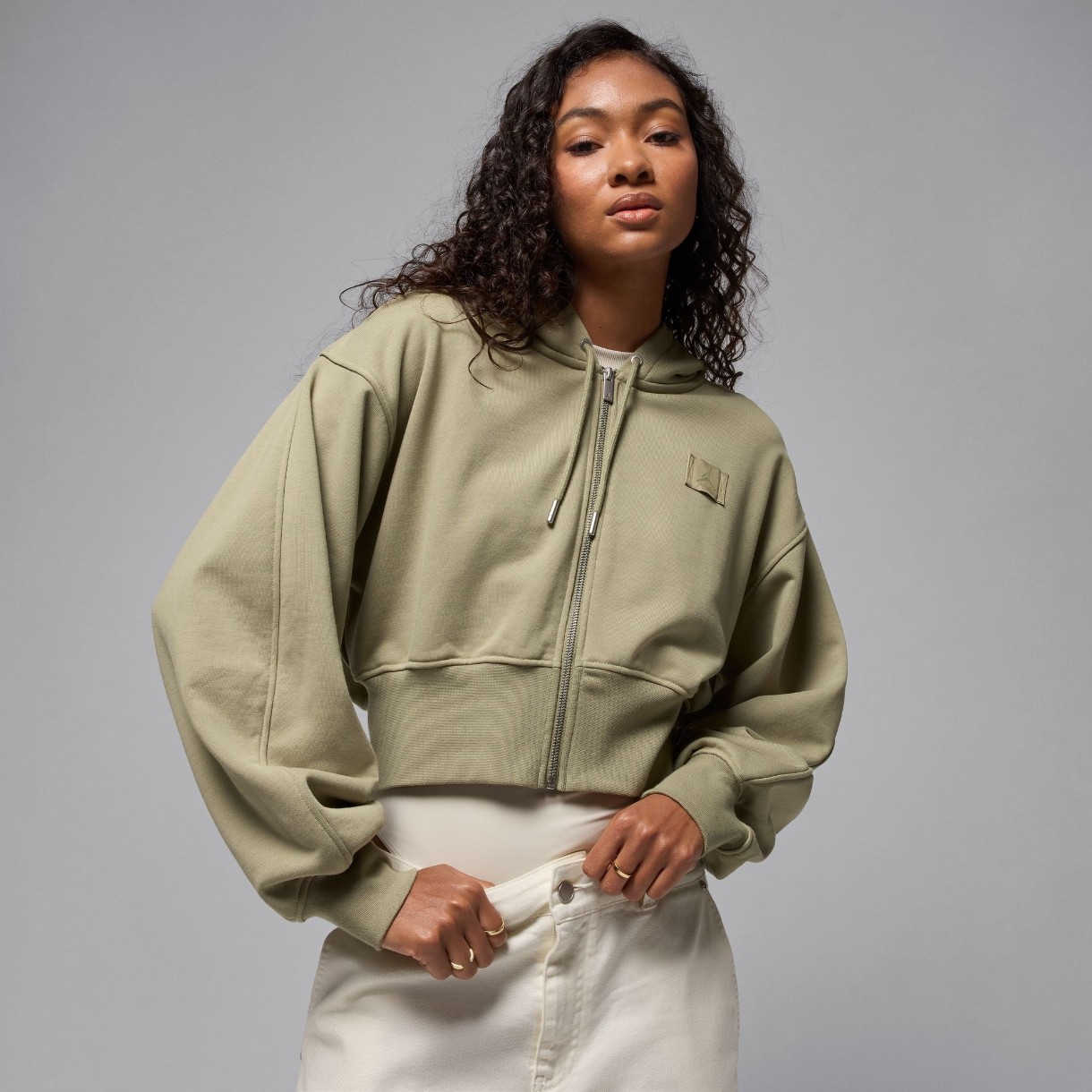 Hanorac damă Nike W Jordan Flt Flc Ft Fz Mod Crop Medium Khaki/Thermal Green, s.S