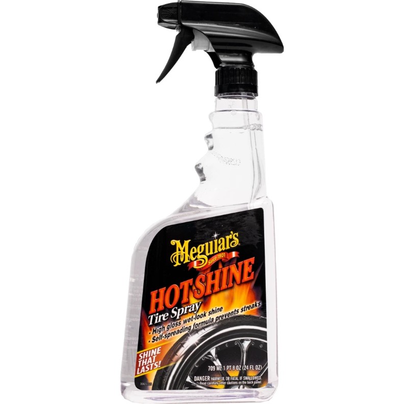 Hot Shine Tire Coating elimină eficient murdăria de pe drum, urmele de lichide tehnice și alte contaminări. Componentele polimerice hidrofobe și anti-ozon păstrează efectul de negru pentru o perioadă lungă de timp, protejând cauciucul de îmbătrânire și crăpare. Oferă suprafețelor tratate un aspect îngrijit. Are un grad ridicat de strălucire.