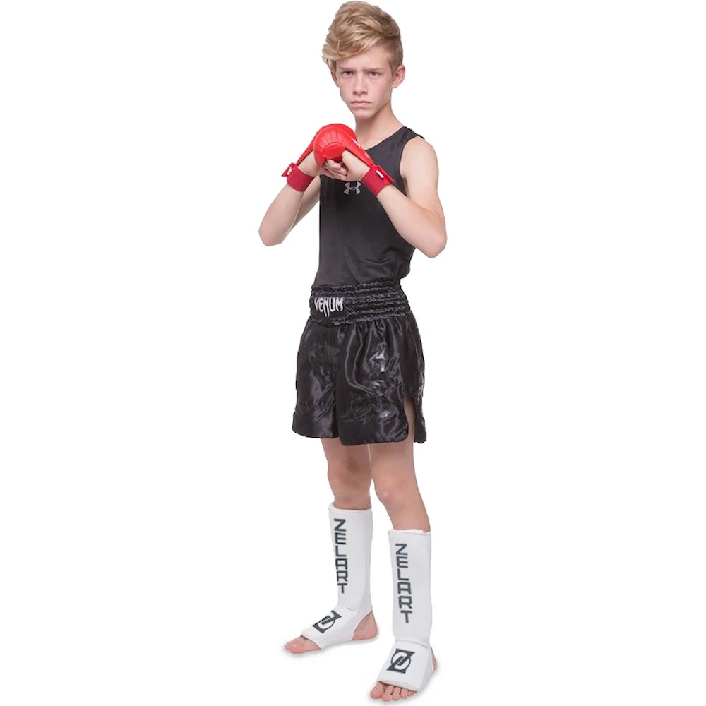 Loviturile la tibie sunt unele dintre cele mai traumatizante, iar în sporturile de contact cu utilizarea activă a picioarelor – sunt inevitabile. Protecția pentru tibie și talpă de tip ciorap – o variantă excelentă pentru a proteja luptătorul și adversarul său de consecințele loviturilor aplicate cu picioarele. Modelul este indispensabil în timpul sparring-urilor și antrenamentelor de tehnici de lovire cu picioarele în karate, taekwondo, wushu. Acest tip de echipament este potrivit pentru luptători cu vârste între 6 și 18 ani. Se folosește doar în timpul antrenamentelor.