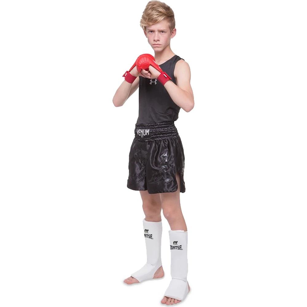 Protecția pentru picioare este realizată din poliester, așa că achiziția ei nu va afecta prea mult bugetul dumneavoastră. Este o alegere excelentă pentru copii și pentru cei care nu s-au decis încă asupra sportului preferat. Datorită construcției de tip ciorap, modelul nu alunecă în timpul celor mai intense antrenamente și nu distrage atenția sportivului. Două inserții separate, dense și elastice pe tibie și pe partea superioară a piciorului protejează piciorul luptătorului, dar nu îi restricționează mișcările. Copilul dumneavoastră vrea să se apuce de sporturi de contact? Protejați-i picioarele, comandați protecția pentru tibie și talpă de tip ciorap!