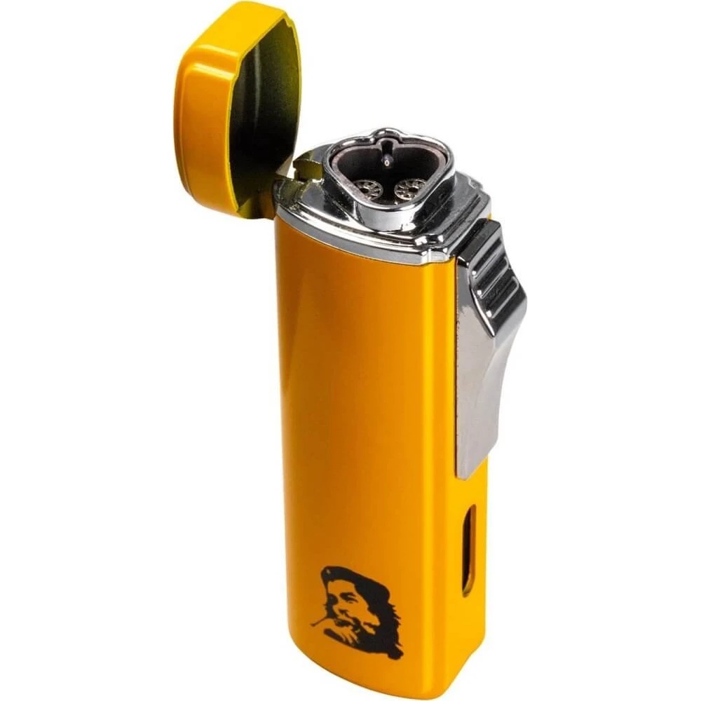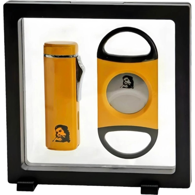 Setul Jean Claude „Che” include o brichetă turbo de un galben vibrant și ghilotină pentru trabucuri, ceea ce îl face accesoriul perfect pentru iubitorii de trabucuri. Prezentată neumplută, bricheta turbo are o 3 flacări fiabile și un design compact, în timp ce rama transparentă plutitoare adaugă o notă unică ambalajului.