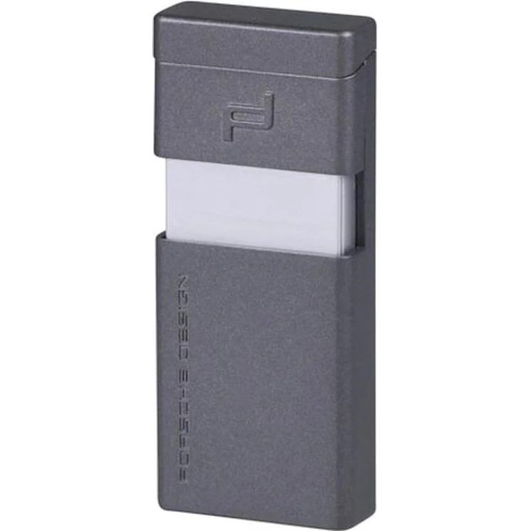 Bricheta este echipată cu o fereastră care vă permite să determinați când este necesară realimentarea. Capacitatea rezervorului este de 1,0 grame. Vă rugăm să rețineți că brichetele de furtună sunt interzise să fie transportate în avioane fie în bagajele de mână, fie în bagajele înregistrate. Toate brichetele Porsche Design sunt brichete rezistente furtunii.