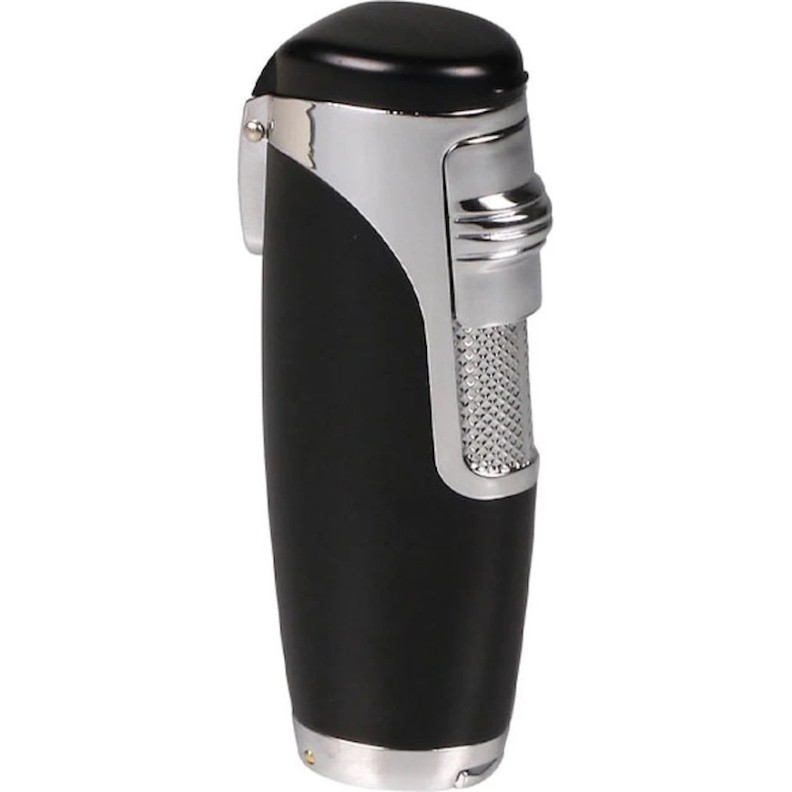 Bricheta neagră va transforma momentul aprinderii trabucului preferat într-o adevărată plăcere. Sistemul unic de aprindere glisantă asigură o utilizare ușoară, iar flacăra albastră cu trei jeturi poate fi reglată după preferințele dumneavoastră. În plus, un tăietor rotund pliabil de 7 mm este amplasat convenabil în partea de jos a brichetei, adăugând funcționalitate și stil acestui accesoriu elegant.