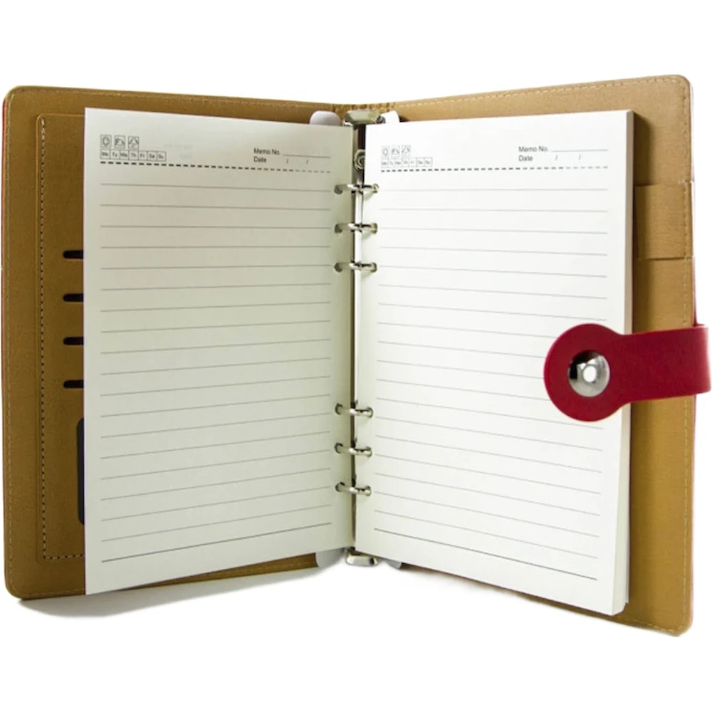 Acest tip de agendă constă dintr-o copertă cu inele și un bloc de hârtie detașabil.