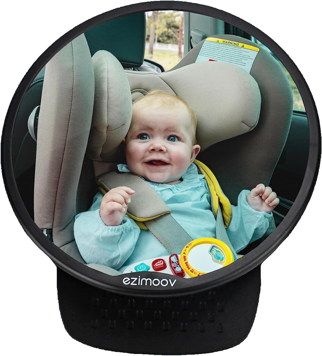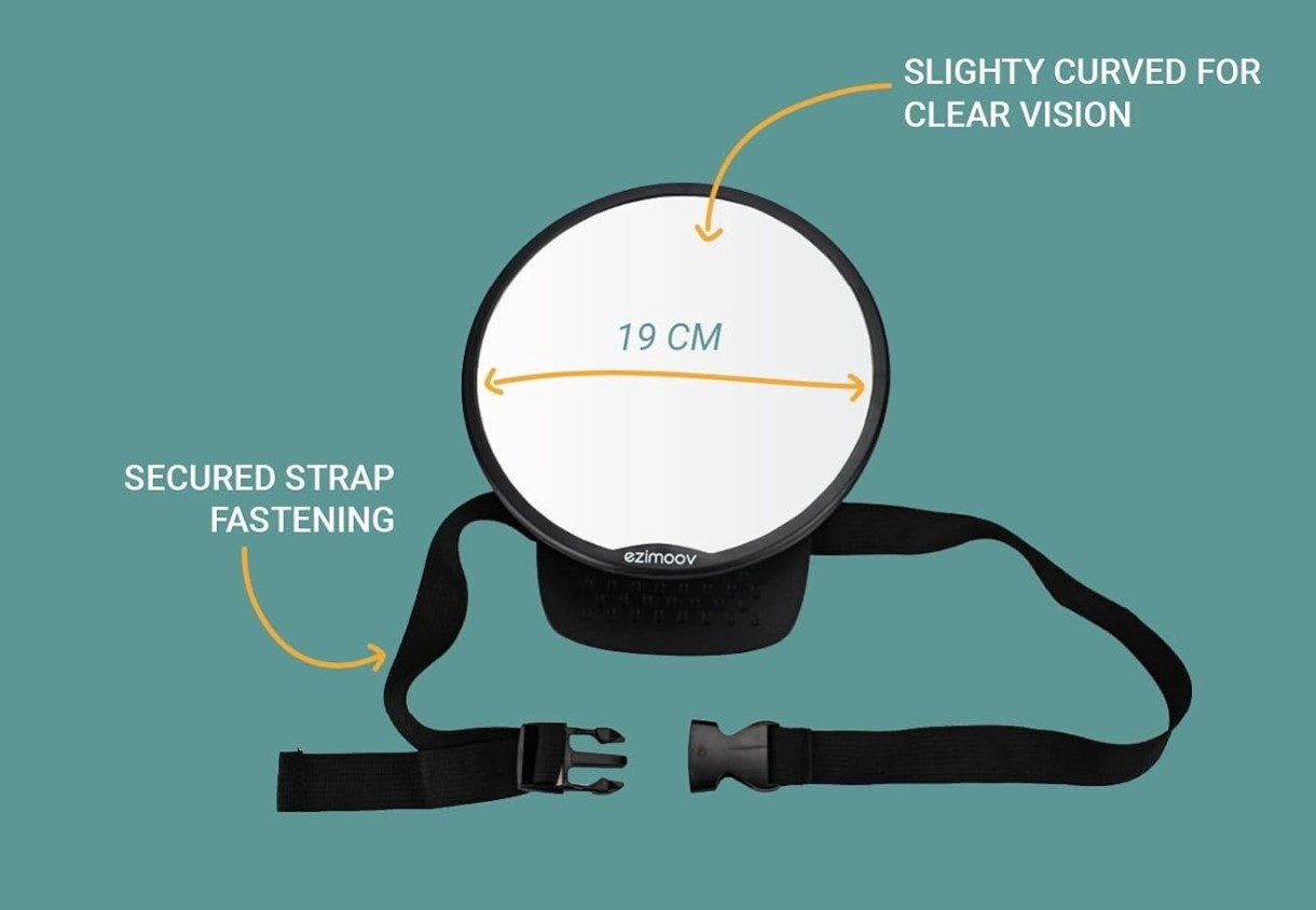 Oglinda retrovizoare Ezimoov Round este o oglinda auto mare, usor curbata, poate fi atasata pe tetiera banchetei din spate a masinii si este ideala pentru scaunele auto orientate spre spate. Oglinda Ezimoov Round permite o vedere completa a copilului asezat in scaunul auto, fara sa fie nevoie sa va intoarceti.