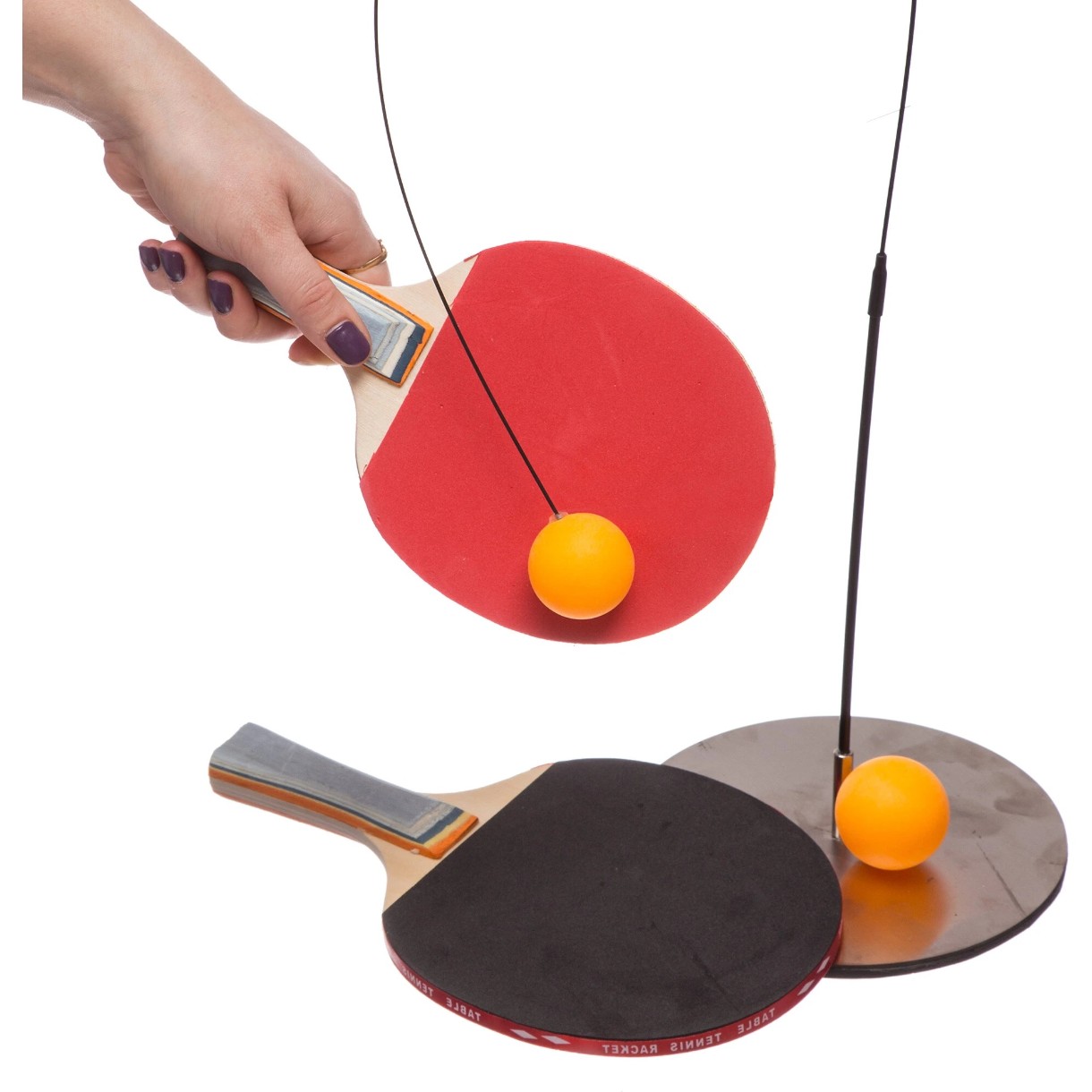 Acest set de antrenament este destinat dezvoltării coordonării, reacției și preciziei loviturilor. Firul și mingile sunt folosite pentru a fixa mingile într-o poziție fixă, permițând jucătorilor să exerseze lovituri fără a fi nevoie să recupereze constant mingile. Sistemul de instalare este foarte simplu: mingile sunt fixate pe fir, care se fixează pe suport. Jucătorul poate regla înălțimea și lungimea firului pentru a imita diverse situații de joc. Acest lucru permite exersarea atât a loviturilor directe, cât și a manevrelor complexe cu rotație.