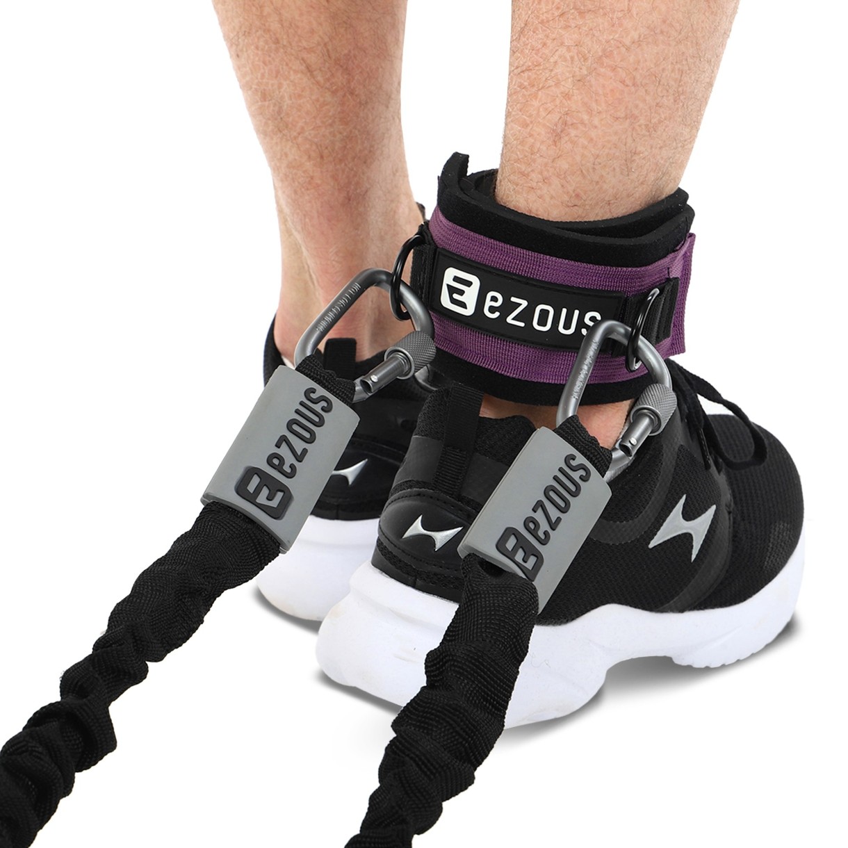 Curea pentru picioare Training Leg Straps Ezous – este un accesoriu sportiv universal, cu ajutorul căruia îți poți tonifia perfect picioarele și fesele. Curelușa plăcută la atingere, de lungime optimă, se înfășoară în jurul piciorului și permite atașarea unui aparat cu greutăți sau a unui extensor pentru antrenamente de forță. Pentru fixare se folosește o bandă velcro durabilă, fabricată dintr-un material rezistent la uzură, care nu se tocește și își păstrează puterea de fixare chiar și după utilizări repetate. O curea rezistentă leagă produsul de două inele mici din oțel, de care se poate atașa, printr-un carabinier, diferit echipament de antrenament.