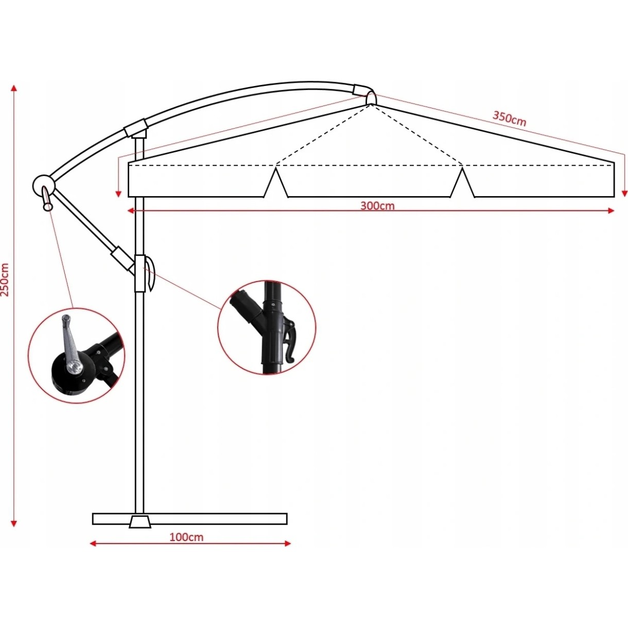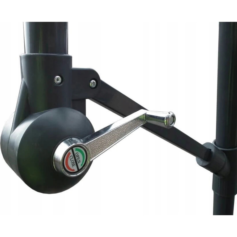 Umbrela este realizată din materiale de înaltă calitate. Este prevăzută cu material impermeabil, ceea ce o face rezistentă la condițiile meteo. Deschiderea și închiderea sunt foarte simple datorită mecanismului cu manivelă.