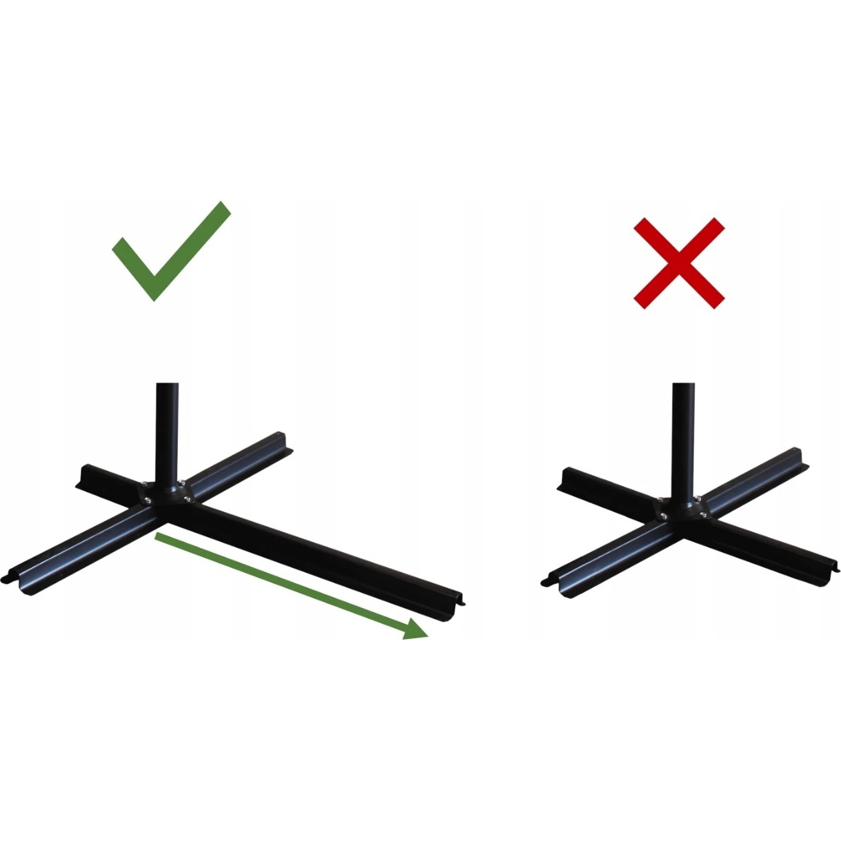 Dispune de un suport mare și solid din oțel vopsit în câmp electrostatic. Stabilitatea este asigurată de orificii speciale din structură sau de greutăți suplimentare (achiziționate separat), destinate fixării umbrelei pe sol. Piciorul frontal este extins pentru stabilitate sporită.