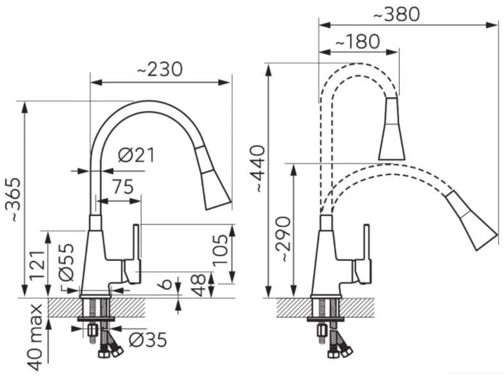 Înălțime pipă290, 440 mm