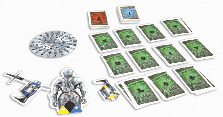 In setcărți de joc - 88 buc., obiecte ciudate - 4 buc., carte, regulile jocului, decodor de disc