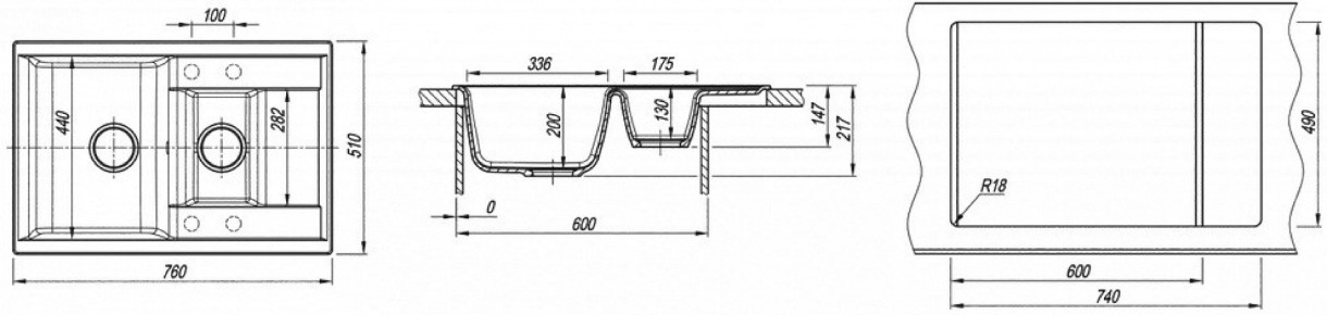 • Размер мойки