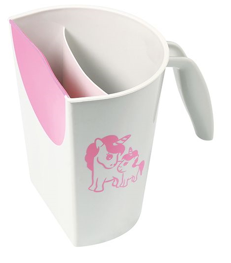 Кружка для купания облегчает полоскание тела и волос малыша. Специально спроектированное эластичное покрытие кружки, приставленной ко лбу ребёнка, позволяет безопасно ополаскивать волосы, исключая попадание воды в глаза и на лицо ребёнка.