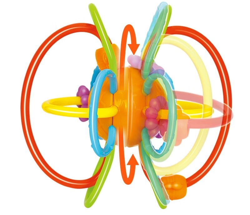 Малыш может играть с этой погремушкой-прорезывателем зубов разными способами, в зависимости от позы (сидя, лежа, ползая) и стадии развития.