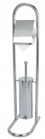 Гарнитур для туалета полностью изготовлен из нержавеющей стали. Стойка состоит из держателя для туалетной бумаги и закрытого ершика для унитаза.