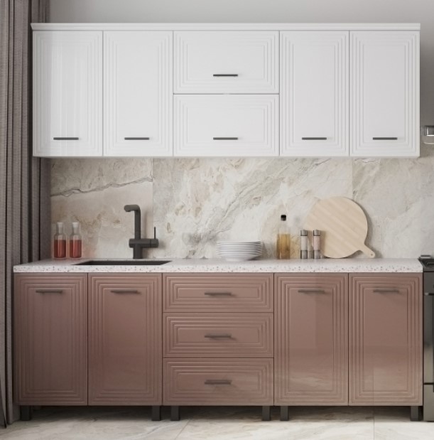 Кухонный гарнитур ML-Mobila Ева 2.20 Белый/Капучино глянец/Белый глянец