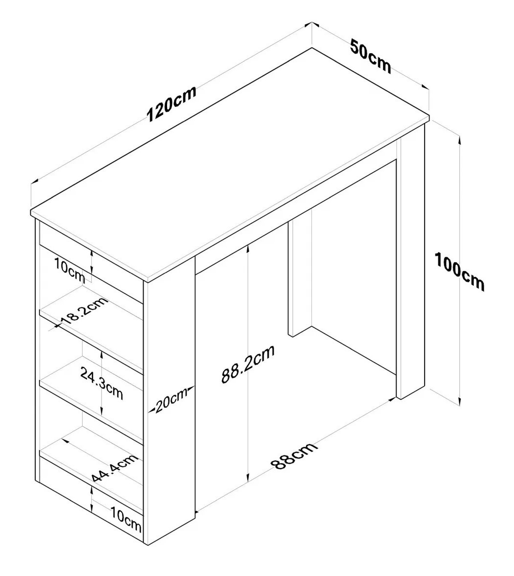 Столешница изготовлена из панелей ДСП, покрытых 100% меламином, что обеспечивает долговечность и устойчивость. Толщина 18 мм добавляет конструкции надёжности и позволяет выдерживать ежедневное использование на протяжении долгого времени.