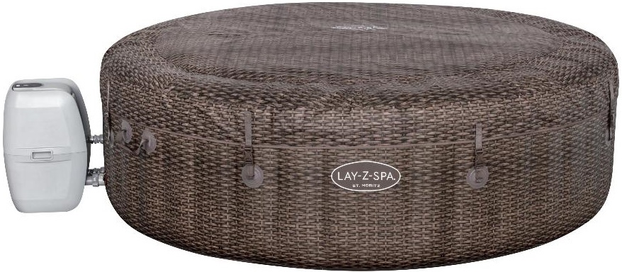 Джакузи надувное Bestway St.Moritz AirJet по форме круглый, вместительный, рассчитан на 5-7 человек. Цвет внешних стенок чаши — ротанг. Есть мягкий пол, функция аэромассажа, фильтрация воды и водонагреватель. Управление осуществляется с помощью кнопок на панели, размещенной на электрическом насосе. На ЖК-дисплее наглядно отображаются рабочие параметры. С помощью таймера можно задавать удобное время запуска программ. Модель 60023 BW можно использовать как в помещении, так и на улице, благодаря функции, предотвращающей замерзание воды.