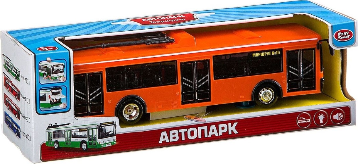 Троллейбус серии "Автопарк", представленный торговой маркой Play Smart, пополнит гараж игрушечных машинок мальчика. Tакие модели смогут заинтересовать не только ребенка. Поскольку они изготовлены из металла и выполнены очень реалистично, Троллейбус оснащен инерционным механизмом, что делает игру более интересной. У него открываются двери, что позволит наполнить его пассажирами, которые могут быть сделаны самостоятельно из картона или взяты из других игрушек. Световые и звуковые функции разнообразят игру, давая ребенку возможность сильней погрузиться в игру.