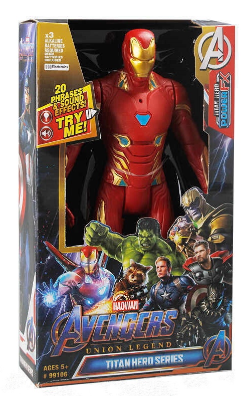 Фигурка супергероя выполнена из пластика, имеет высоту 29 см., звук, подсветку, подвижные руки и ноги, доступны, 12 разных героев на выбор. Без сомнения будет интересна мальчикам, почитателям бесстрашных и сильных персонажей вселенной Marvel.
