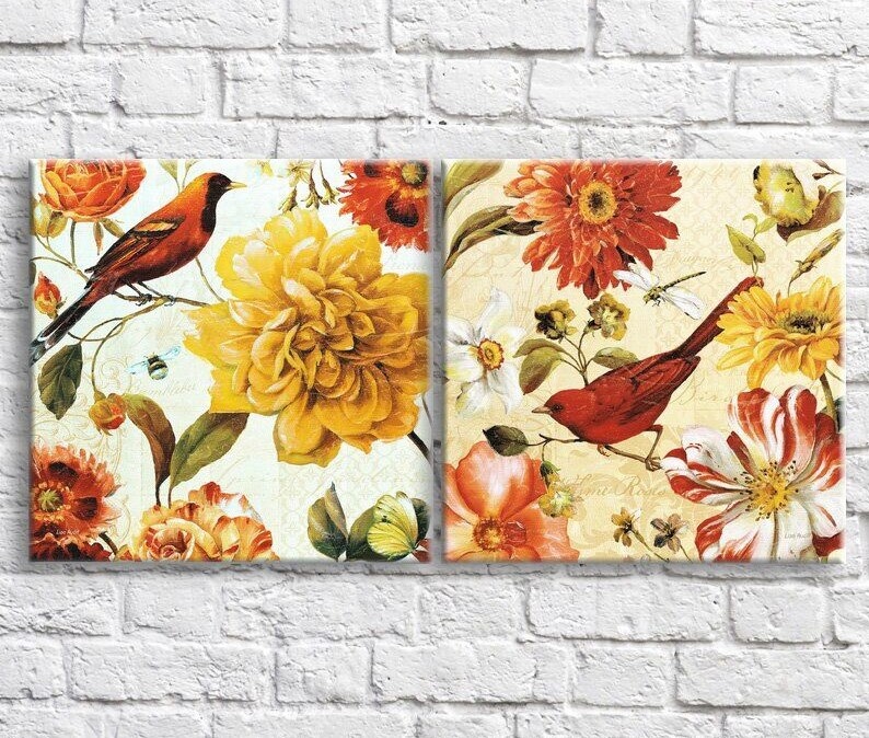 Картина ArtPoster Birds on a branch against a background of colorful flowers (3467767)