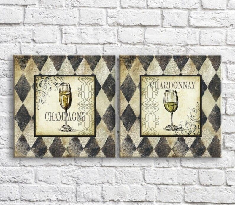 Картина ArtPoster Glass of champagne on a Beige background with patterns (3478712)