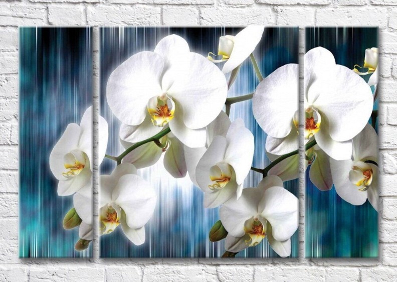 Картина Magic Color Branches of a White orchid on a Blue background of a waterfall (3565156)