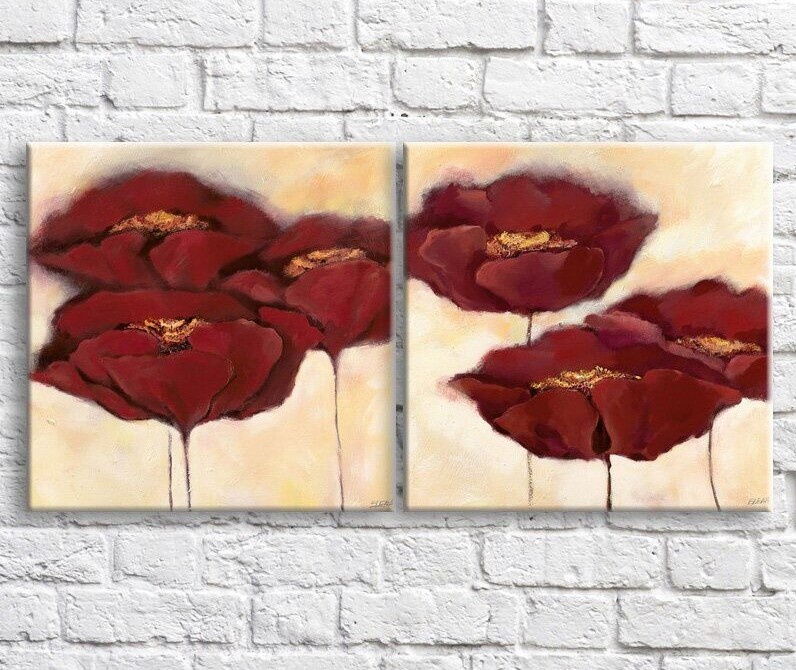 Картина ArtPoster Burgundy poppies on a light Beige background, diptych (3467693)
