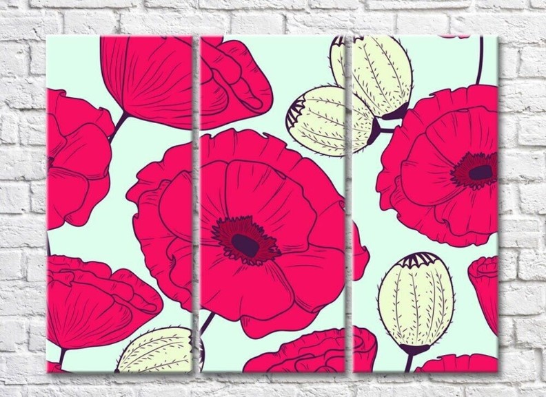 Картина Rainbow Poppy abstraction on a light background (500437)