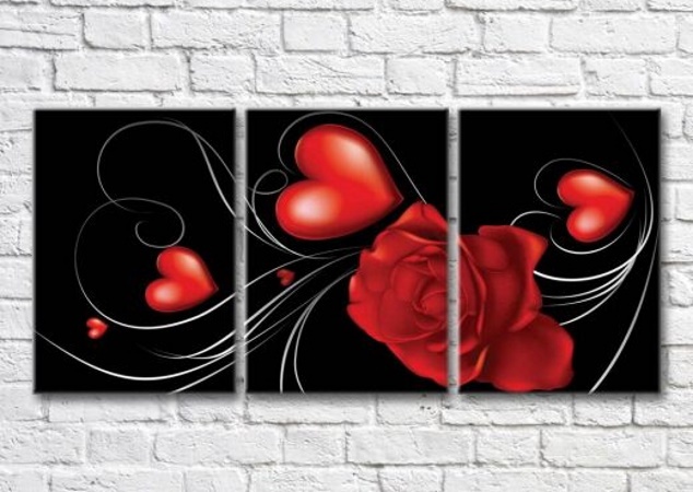 Картина Magic Color Red rose and hearts on a Black background (3565224)