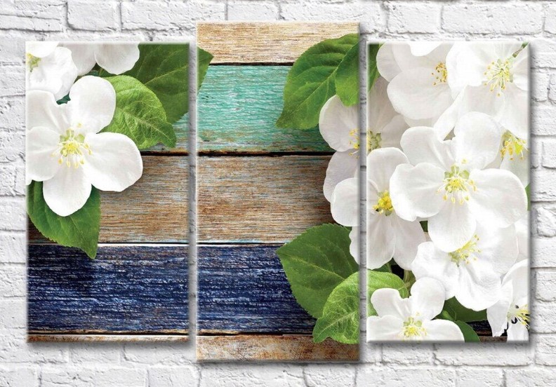 Картина Magic Color Flowers and leaves of apple tree on a plank background (3565209)