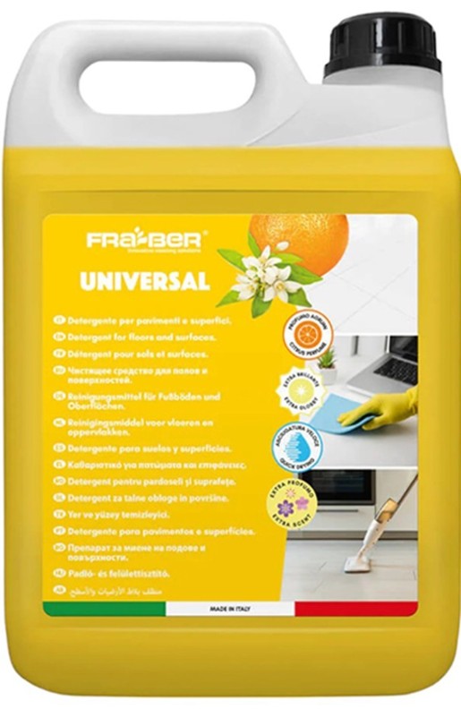 Universal от Fra-Ber это универсальное ароматизирующее чистящее средство для очистки всех типов полов: плитка и бытовые моющиеся поверхности, офисы, промышленные помещения, лаборатории, отели и рестораны. Это средство для мытья пола было специально разработано для чистки любого типа пола (паркет, плитка, мрамор...), поверхностей и отделки (сантехника, раковины...). Благодаря высокой моющей способности глубоко очищает, быстро высыхает и не нуждается в ополаскивании. По завершении процедуры оставляет приятный и стойкий аромат в помещениях, не оставляет разводов, обеспечивает придание блеска.