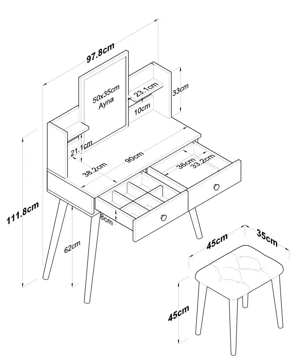 Благодаря продуманному дизайну и вместительному хранению, столик помогает организовать удобный уголок для всех ваших косметических средств. Просторная поверхность подходит для размещения аксессуаров, а встроенные ящики сохраняют порядок и скрывают лишние предметы.