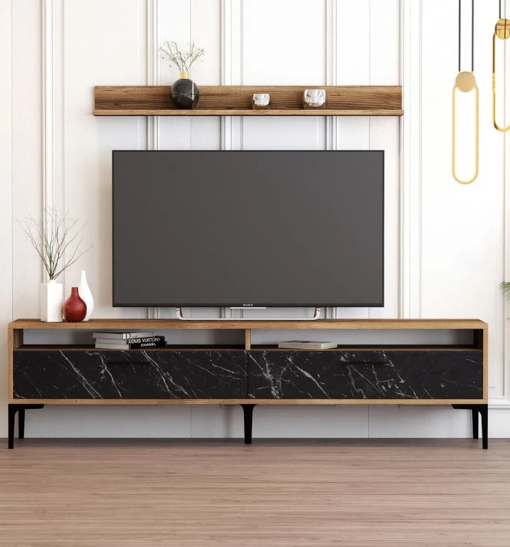 Тумба под ТВ Trendy Istanbul Walnut/Black Marble/Black 180x47x35cm GTR000116