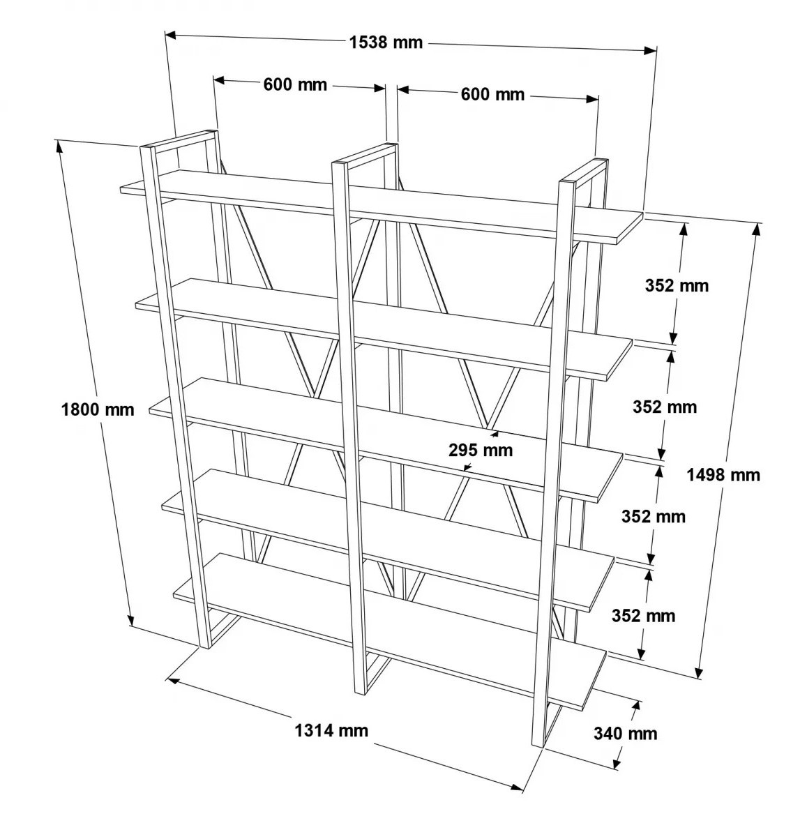 Стеллаж Trendy MN05-BA Black/Walnut 180x153.8x34cm GTR000494