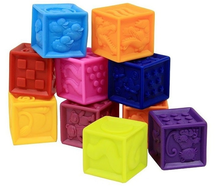 Разноцветные красочные силиконовые кубики Посчитай-ка - развивающая игра для самых маленьких. Кубики легко сжимать в детских ладошках и с ними можно даже купаться. По граням нанесены цифры от 1 до 10, различные узоры и фигуры. Их силиконовых кубиков просто собрать высокую башню или цветной домик.